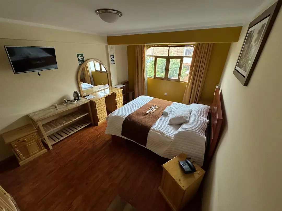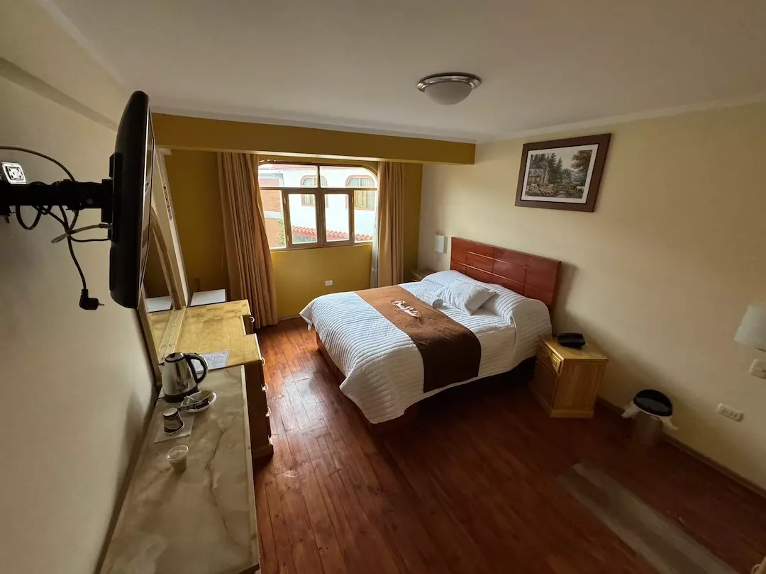 The 15m2 garden view matrimonial bedroom with queen beds is equipped with a cable TV, desk and closet. Includes private bathroom with shower and 24-hour hot water, plus toiletries.